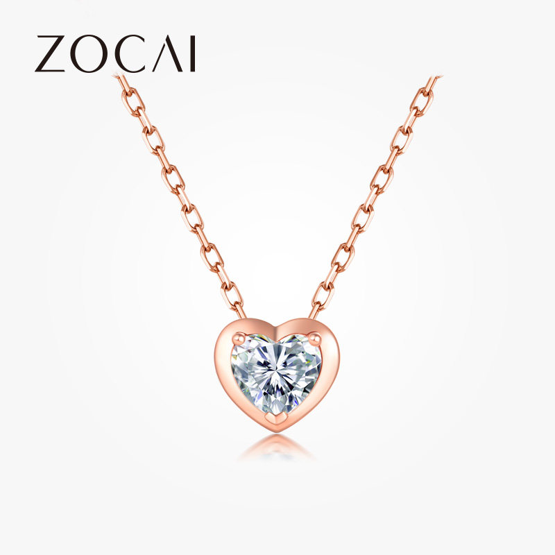 佐卡伊18k玫瑰金钻石心形项链女真钻750彩金红宝石爱心锁骨链吊坠