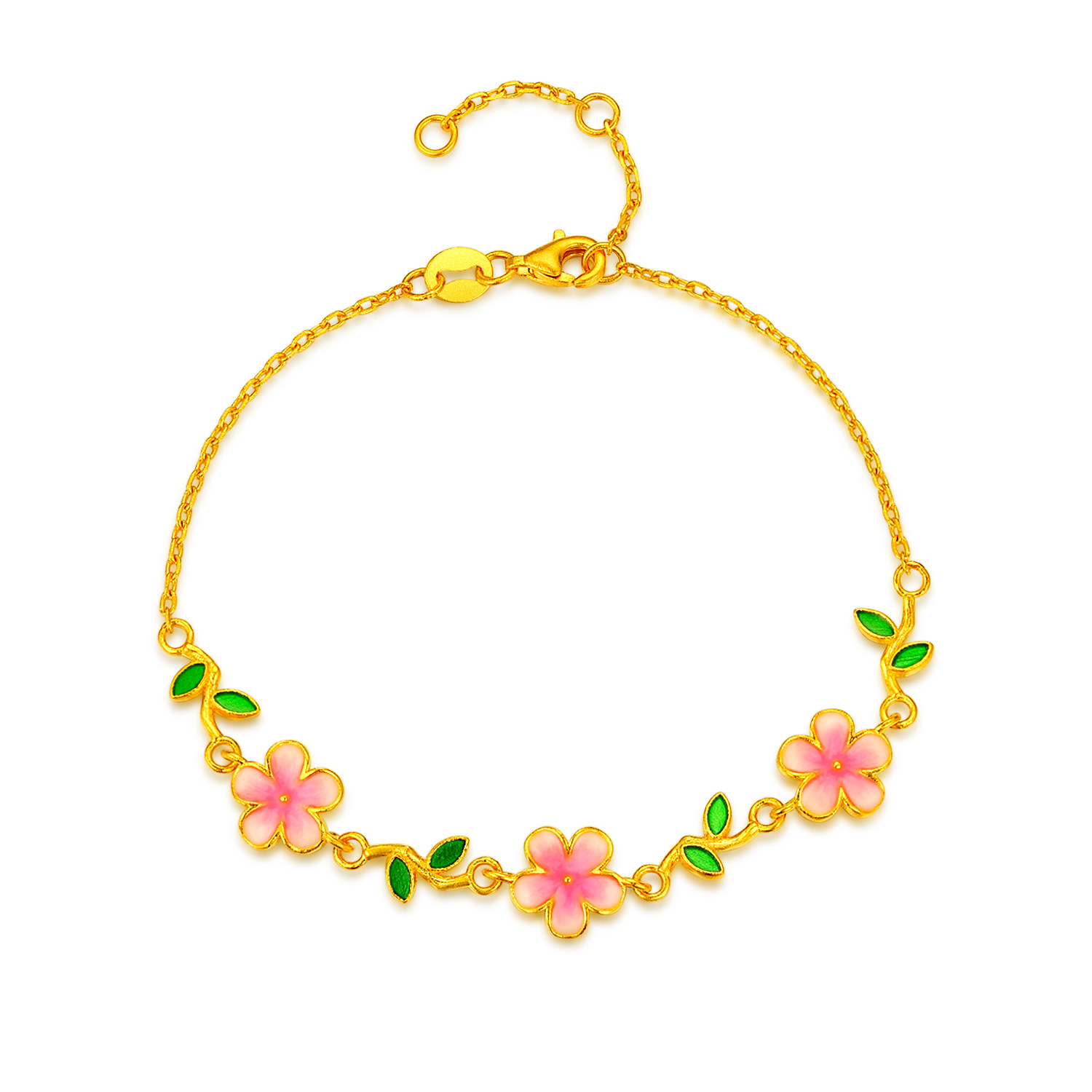 佐卡伊 桃花黄金手链细珐琅彩金手链女款新足金手饰婚嫁首饰礼物