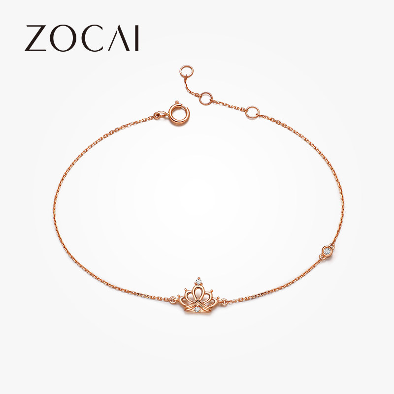 佐卡伊 一生的公主 18k玫瑰金钻石手链女真钻正品750彩金皇冠手饰