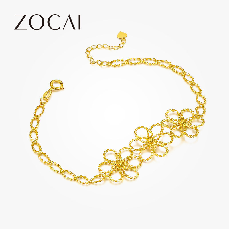 佐卡伊 黄18K金格桑花手链彩金花朵手链女士珠宝繁花手饰珠宝