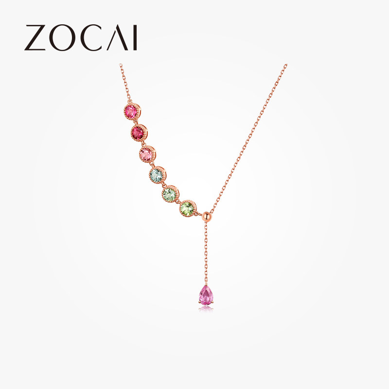 佐卡伊 玫瑰18K金碧玺项坠彩色宝石拼色碧玺彩金锁骨链项链新品