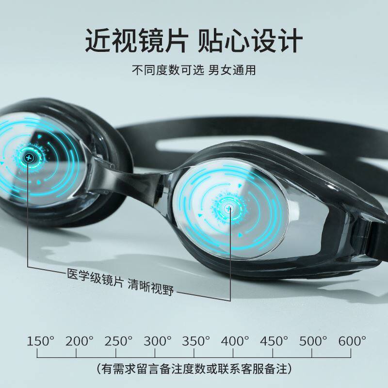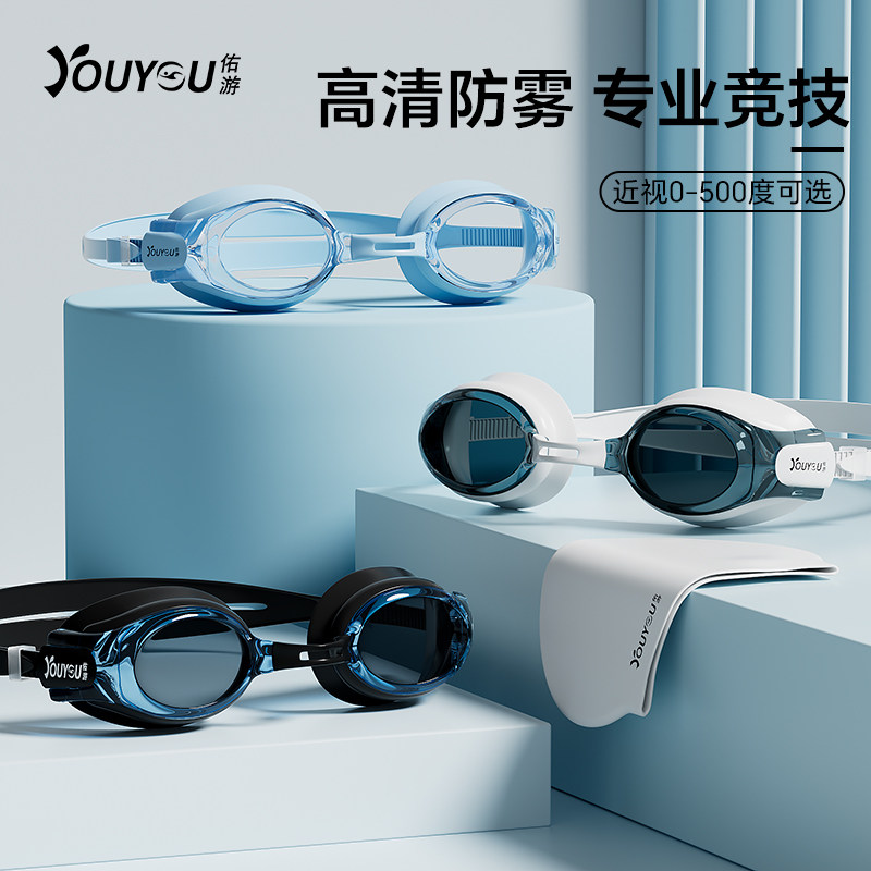 佑游平光泳镜防水防雾高清男女近视游泳镜带度数潜水游泳眼镜装备