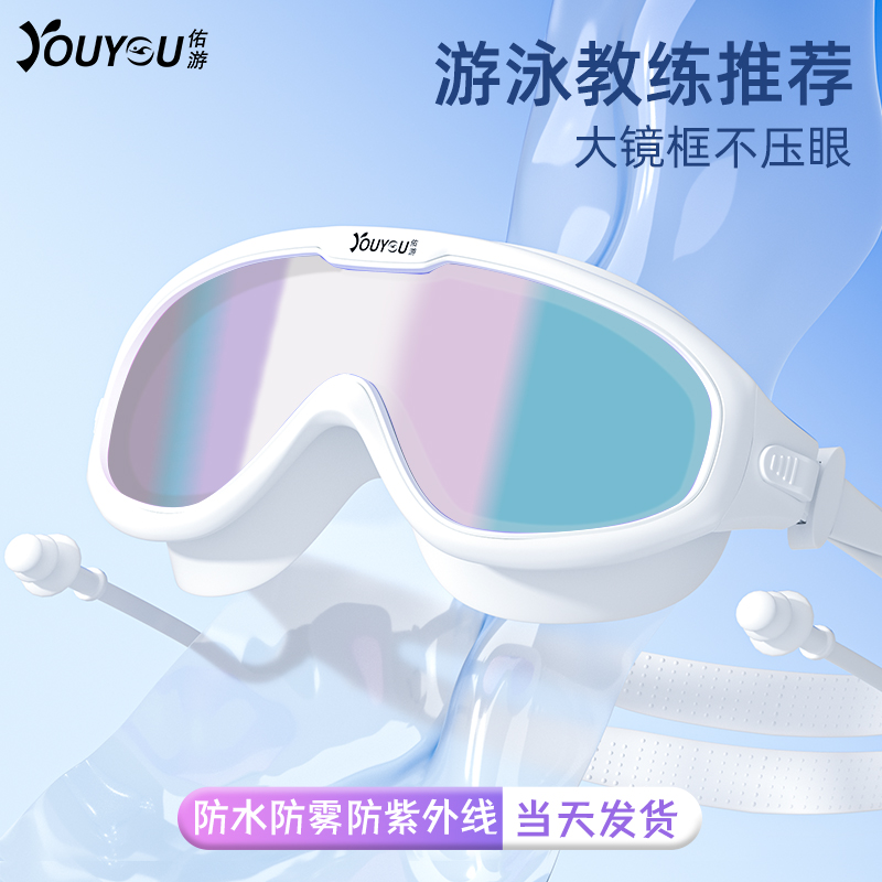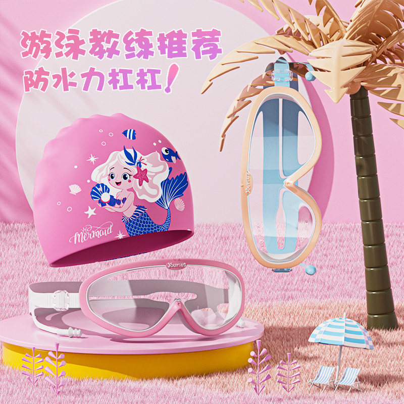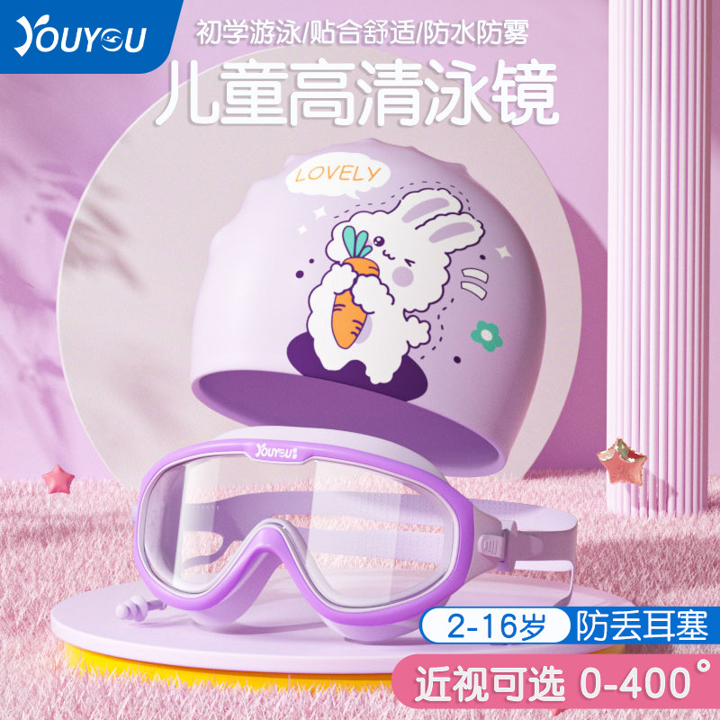 佑游儿童泳镜泳帽男女童游泳眼镜防水防雾高清大框潜水镜专业游泳