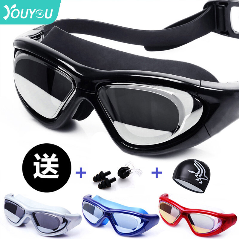 佑游男女大框电镀近视泳镜高清透明平光防水防雾潜水游泳眼镜