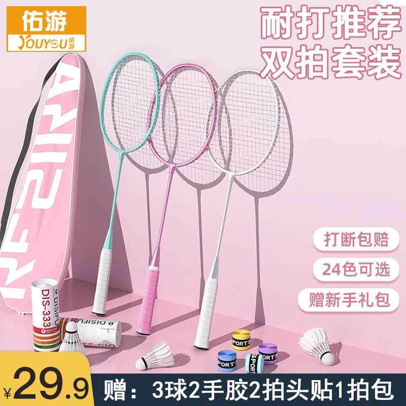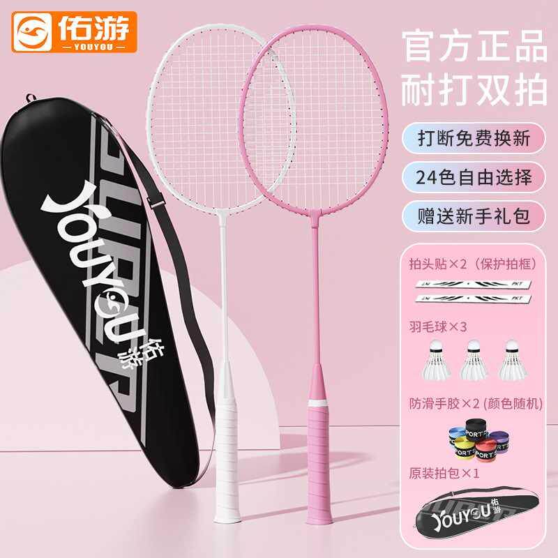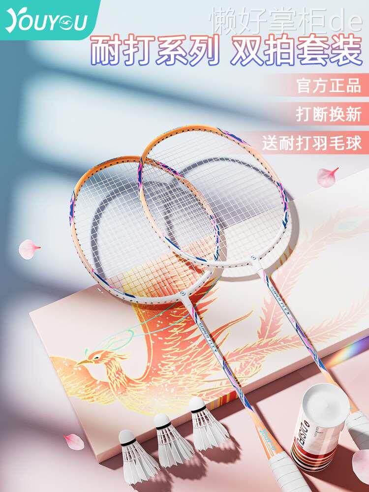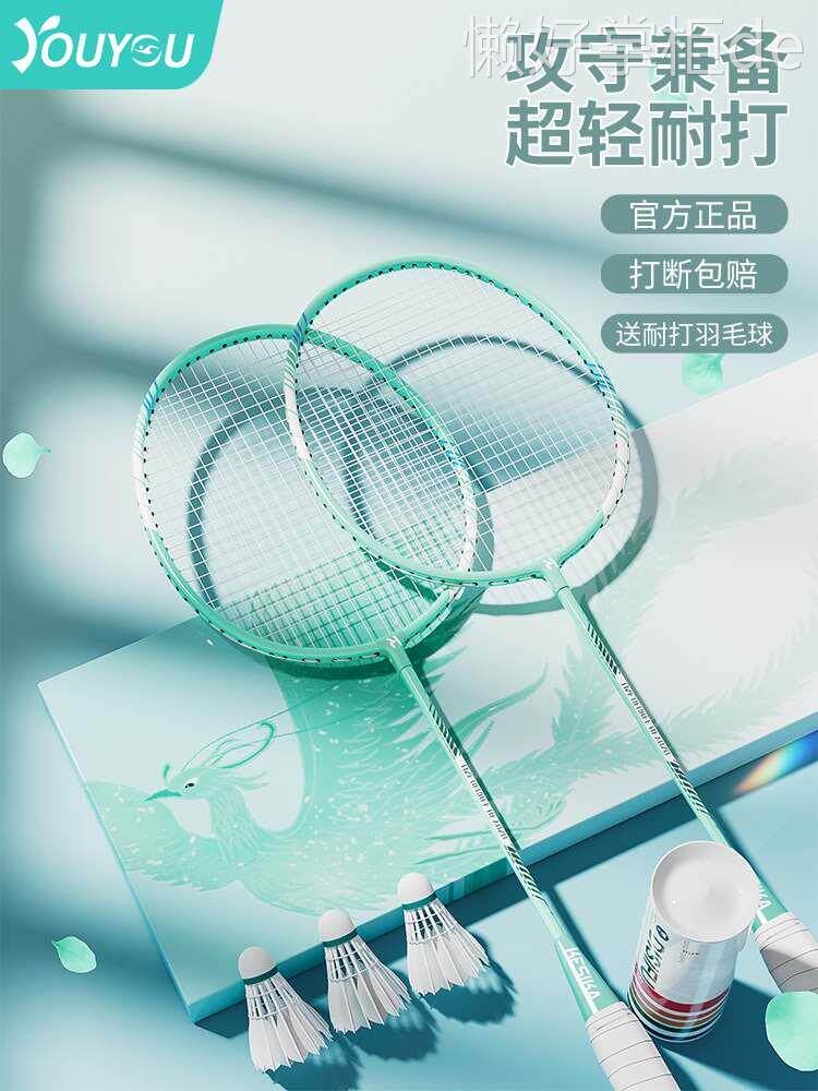 佑游超轻耐打羽毛球拍官方正品旗舰店男女专业碳素双拍学生套装