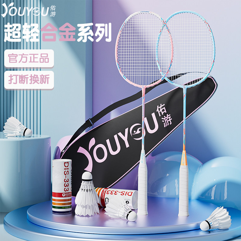 佑游新款羽毛球拍耐用耐打轻便官方正品男女专业合金双拍学生套装