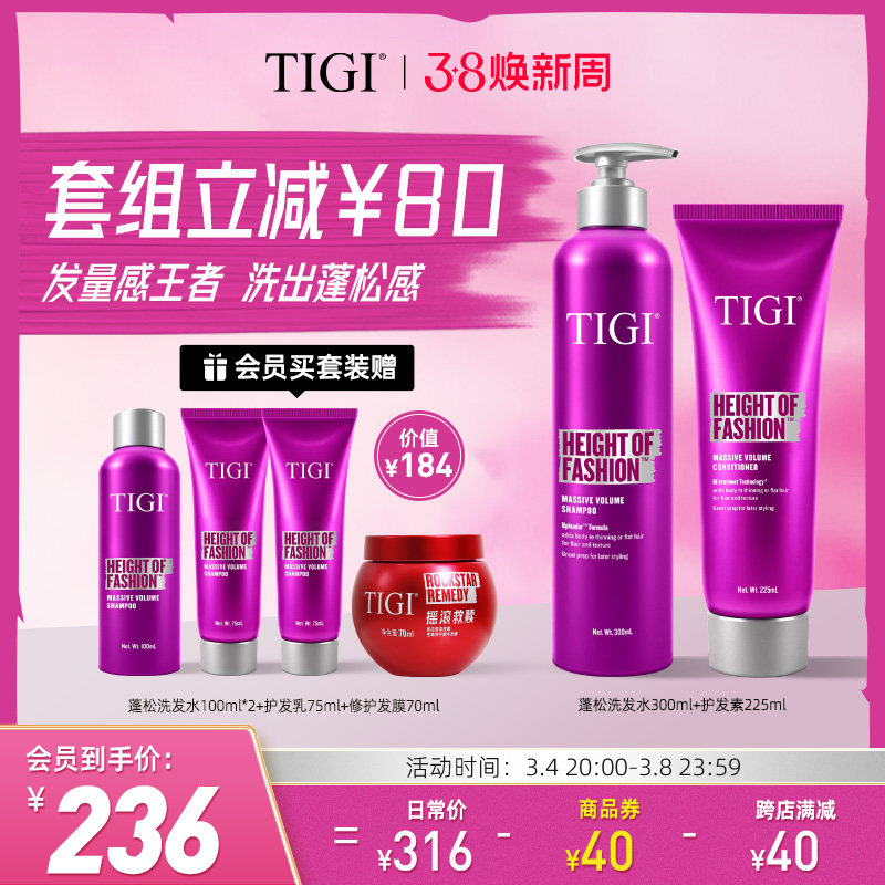 【38立抢】TIGI洗发水持久蓬松护发素洗护套装丰盈蓬松无硅油