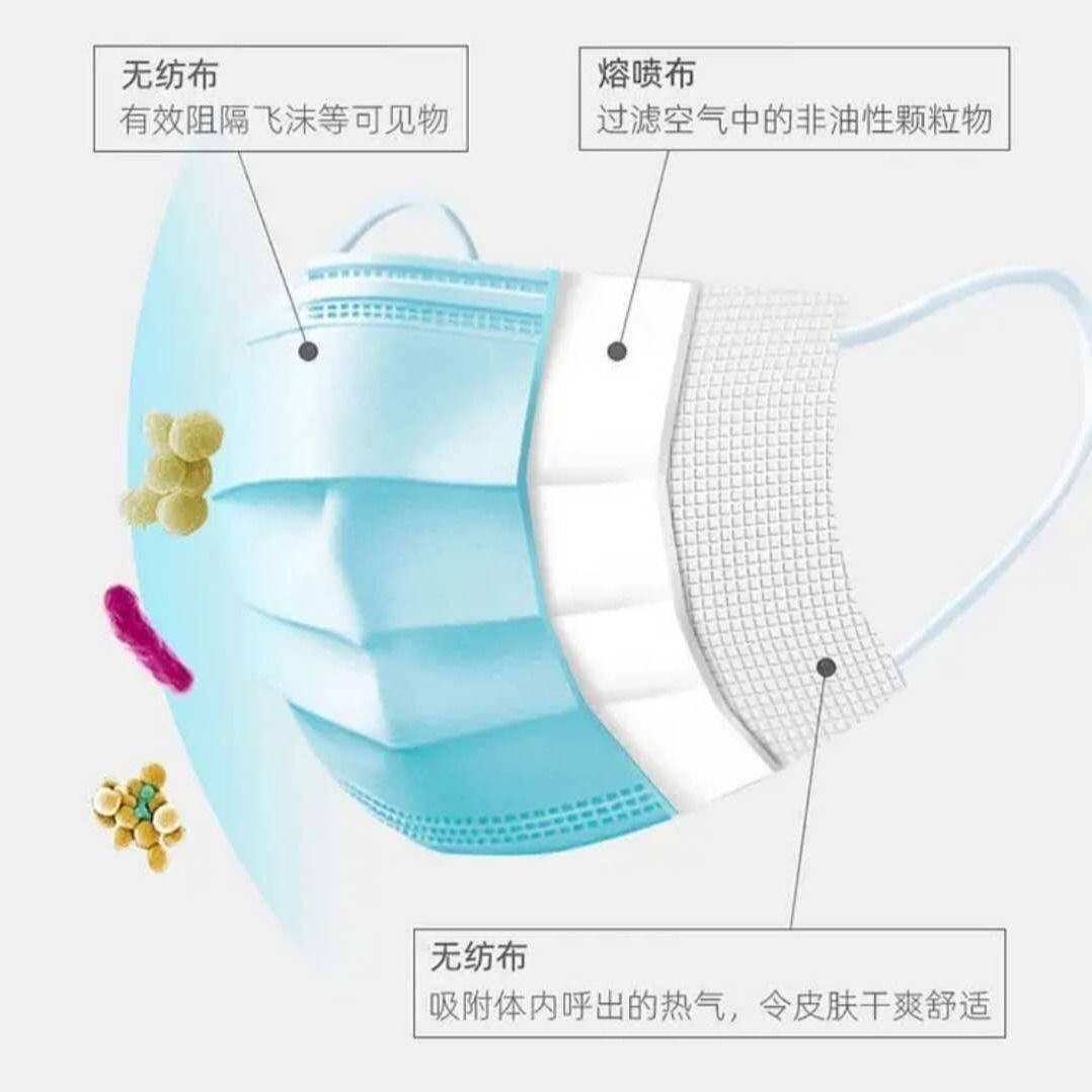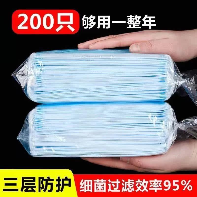 一次性蓝色口罩三层防尘透气100只成人防护口罩独立包装男女
