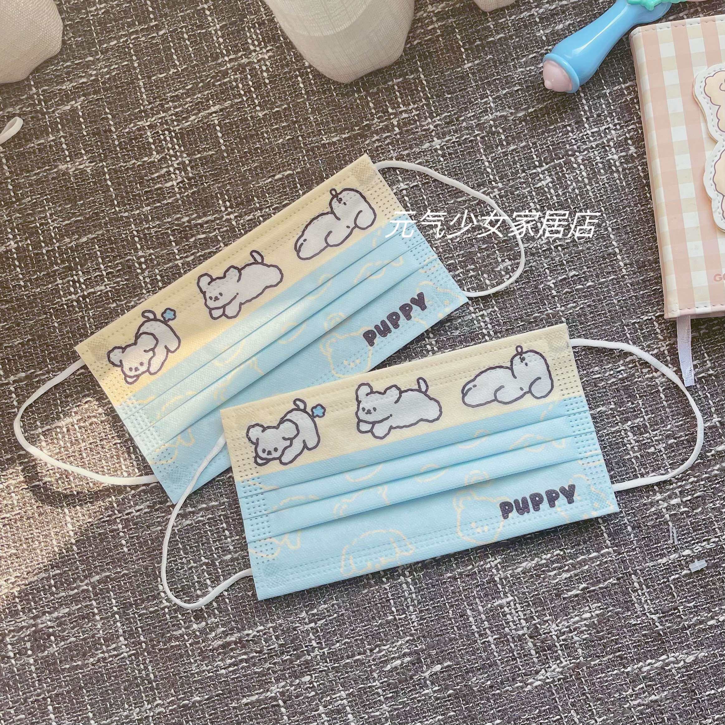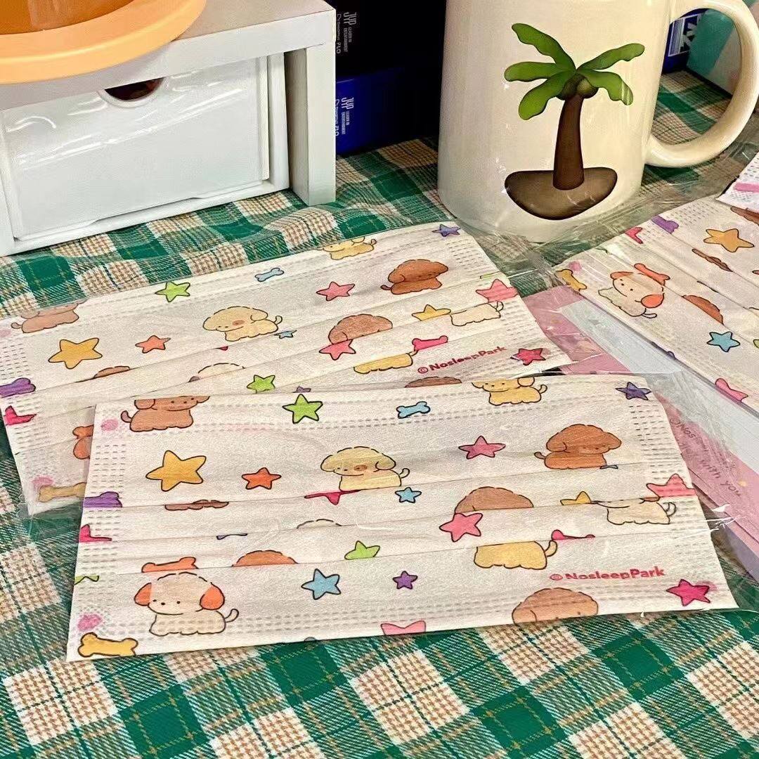 原创新款星星小狗口罩一次性防护可爱卡通印花成人三层平面显脸白