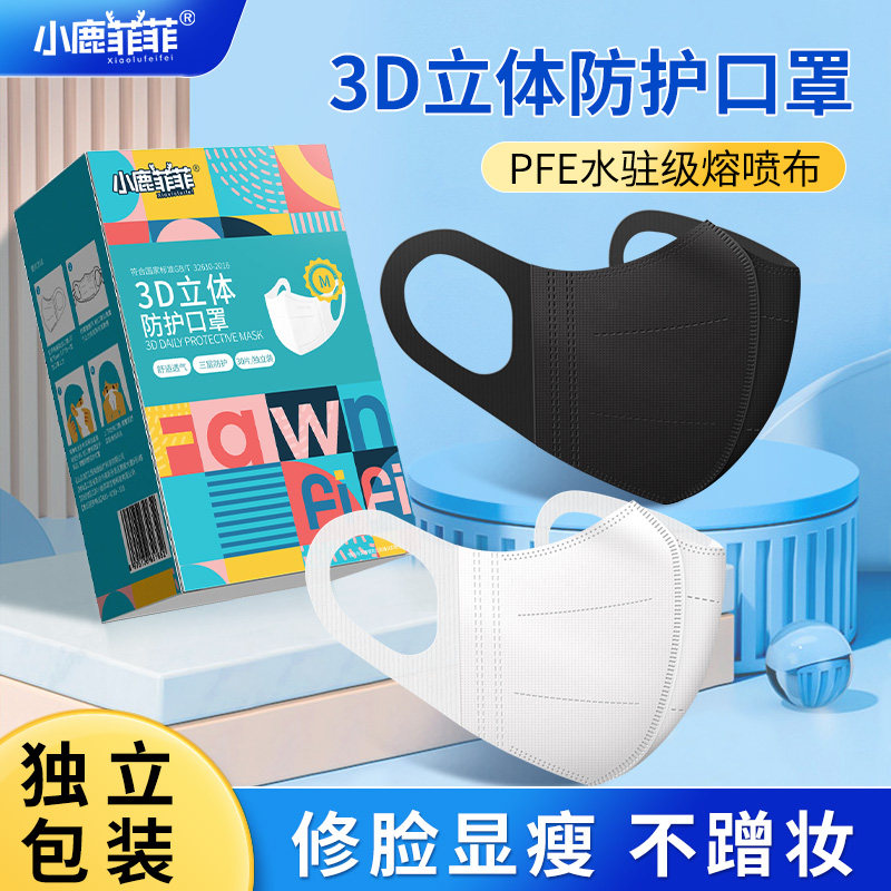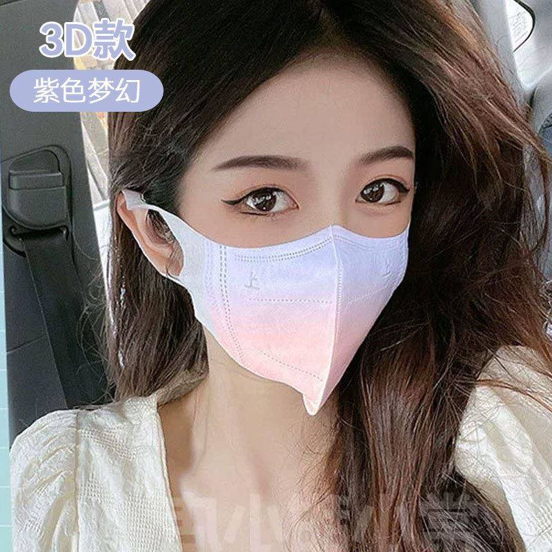 小鹿菲菲网红款3d立体防晒口罩女渐层色不花妆一次性防护彩色白色