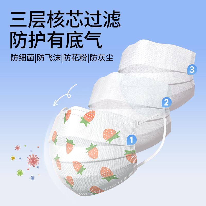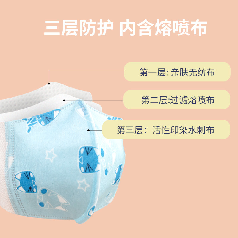 口罩一次性防护三层含熔喷小孩学生儿童宝宝防飞沫防尘透气口鼻罩