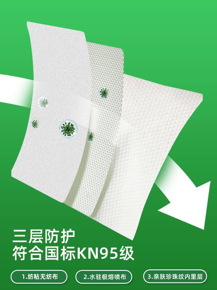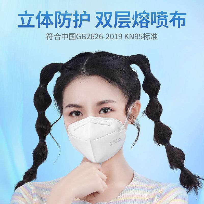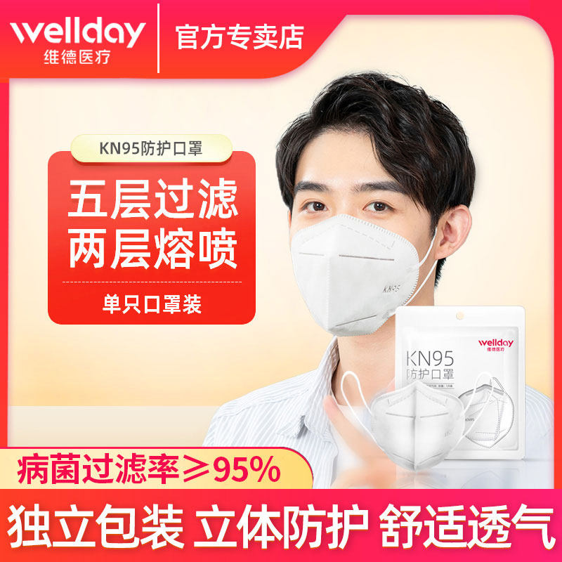WELLDAY一次性KN95防护口罩薄款5层透气熔喷布3d立体男女独立包装