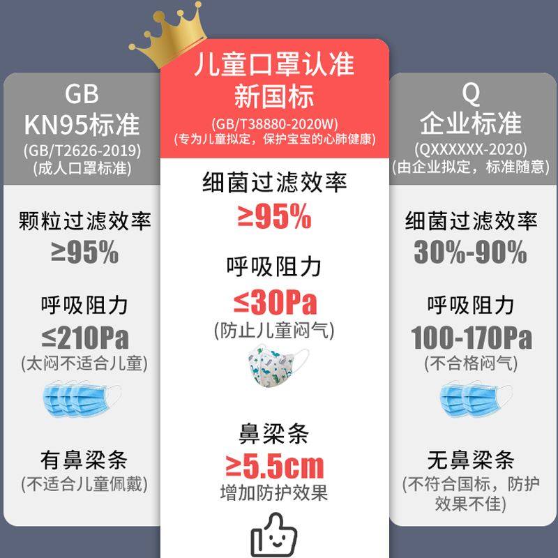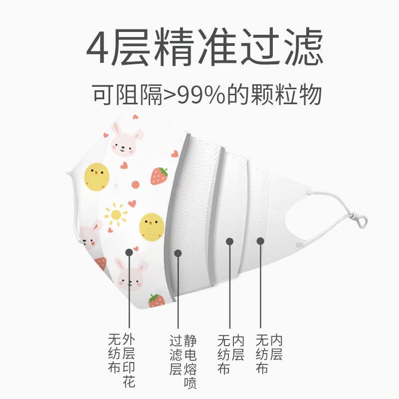 儿童国标N95防护口罩可爱卡通款独立包装一次性3D立体盒装 4-10岁