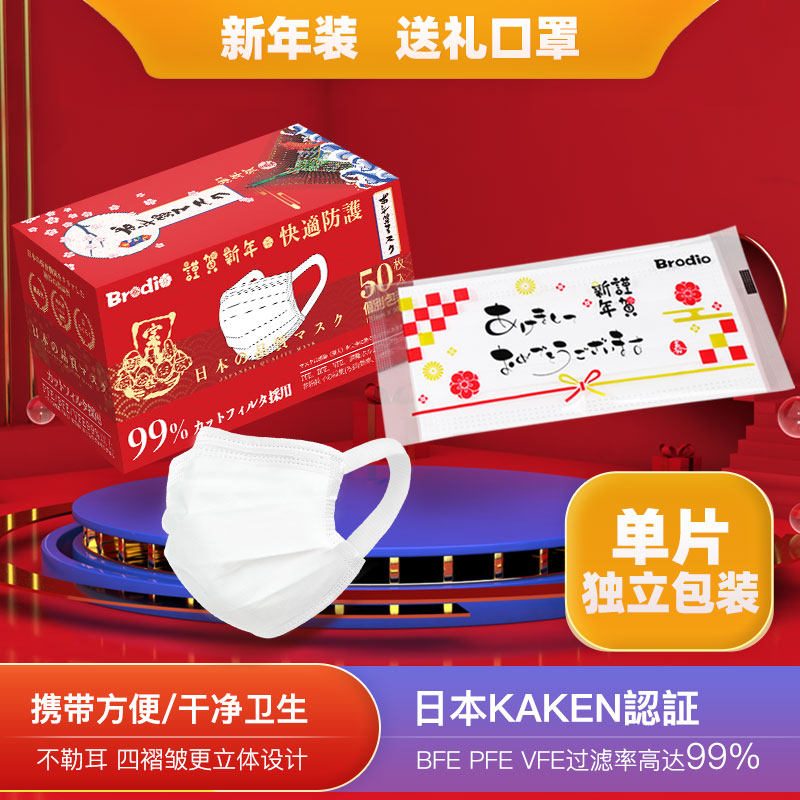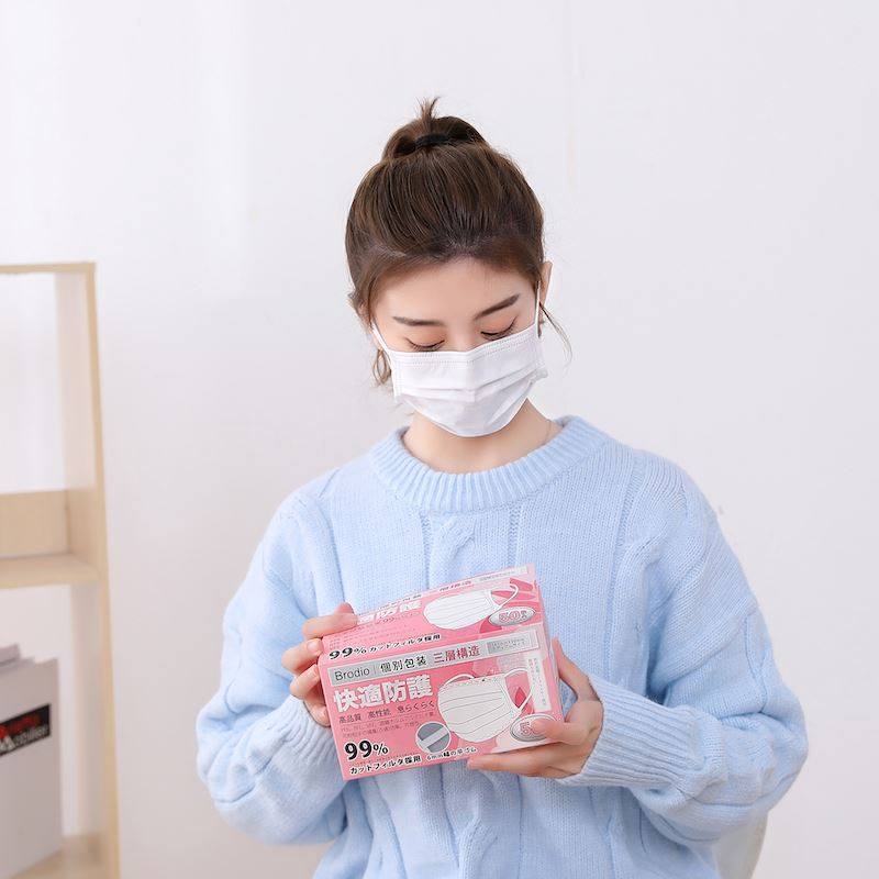 Brodio出口女士小脸口罩一次性三层独立包装防护泡泡纱耳带不勒耳
