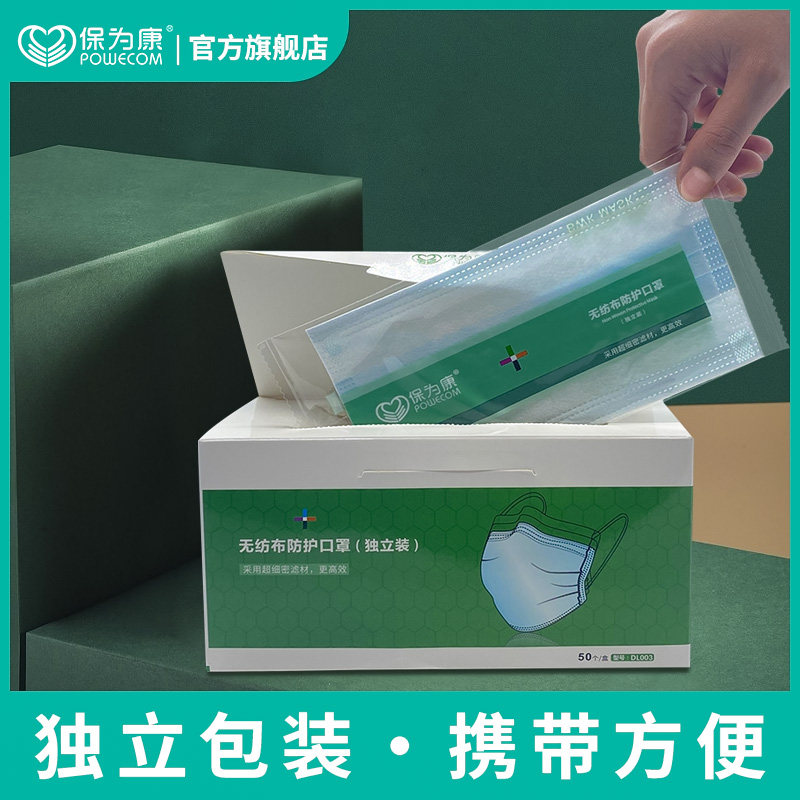 保为康DL003独立包装三层防护口罩防飞沫粉尘花粉含熔喷布一次性