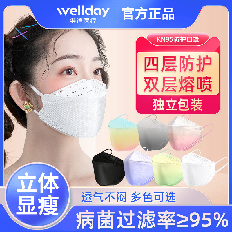 维德韩版一次性鱼型KN95防护口罩薄款透气熔喷布男女独立包装