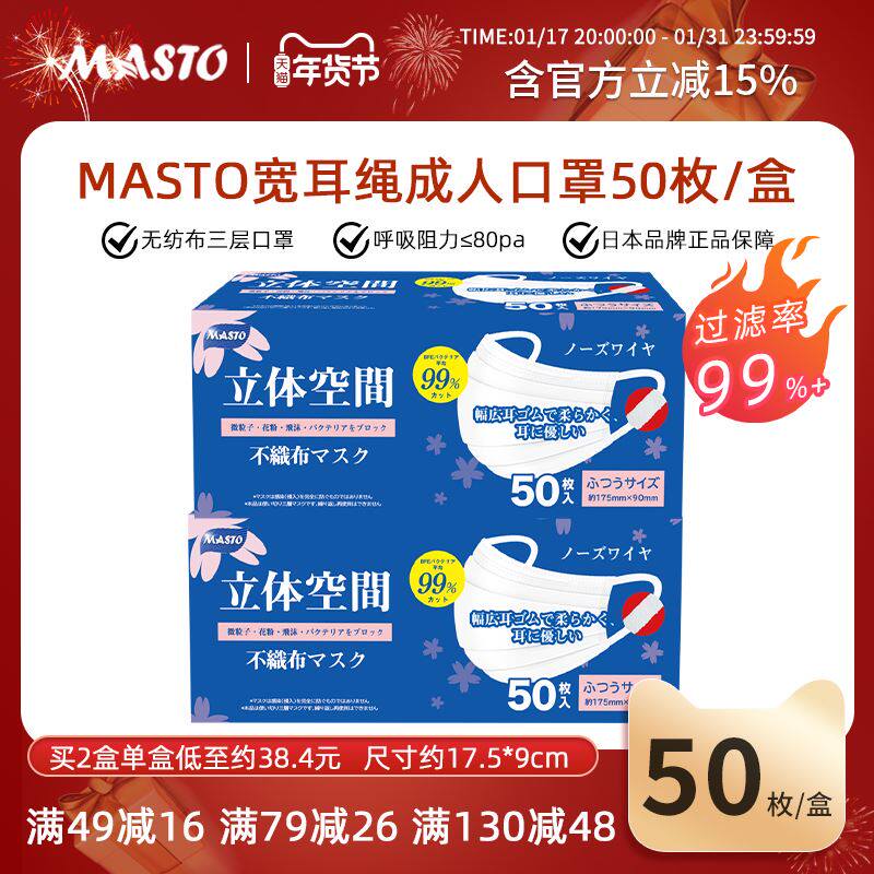 Masto一次性口罩三层双鼻条出游透气防护防尘薄款独立装防晒