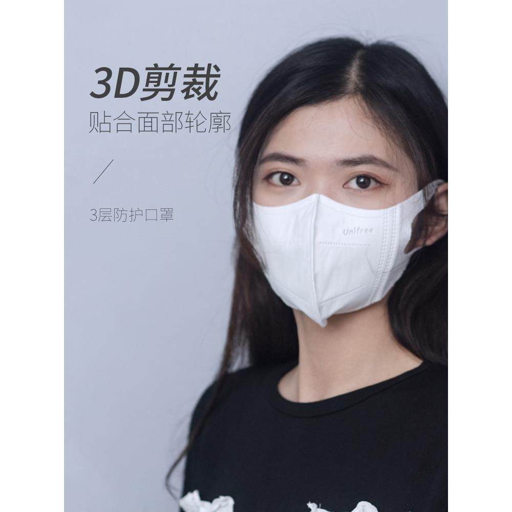 unifree一次性口罩三层白色3d立体防护成人口罩薄款unfiree口罩