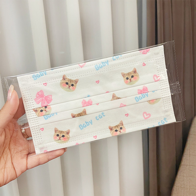 韩国ins风原创设计星星小猫咪口罩一次性三层防护可爱卡通印花女