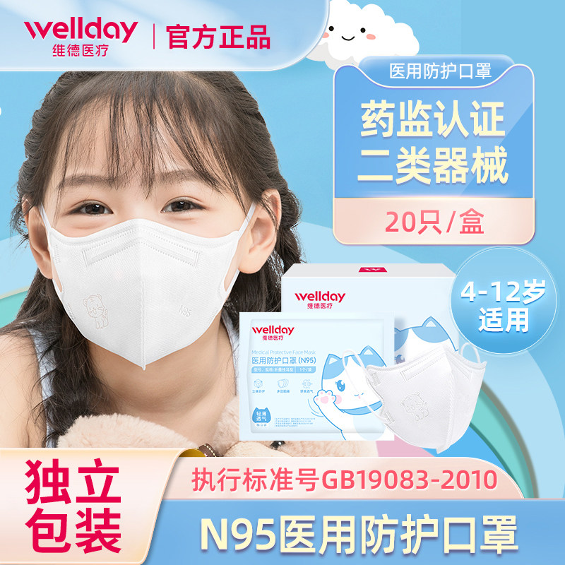 维德医疗儿童N95医用防护口罩一次性3d立体小孩医疗级别专用囗罩