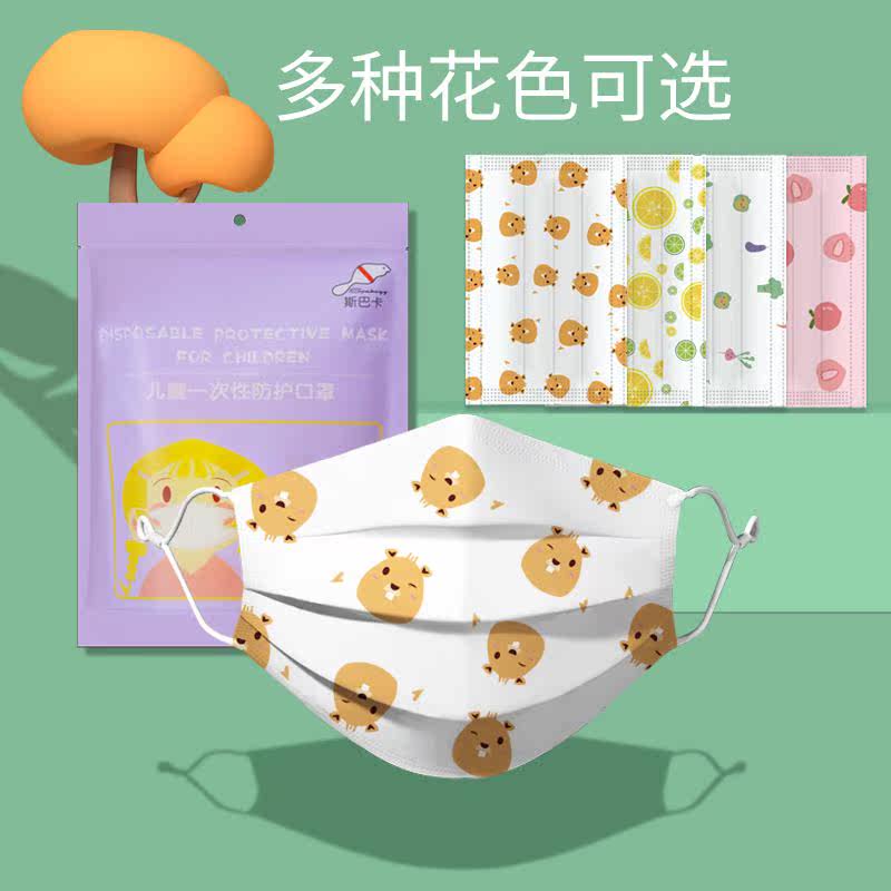 淑洁儿童口罩3D立体一次性男女大童宝宝专用开学透气防护三层口罩