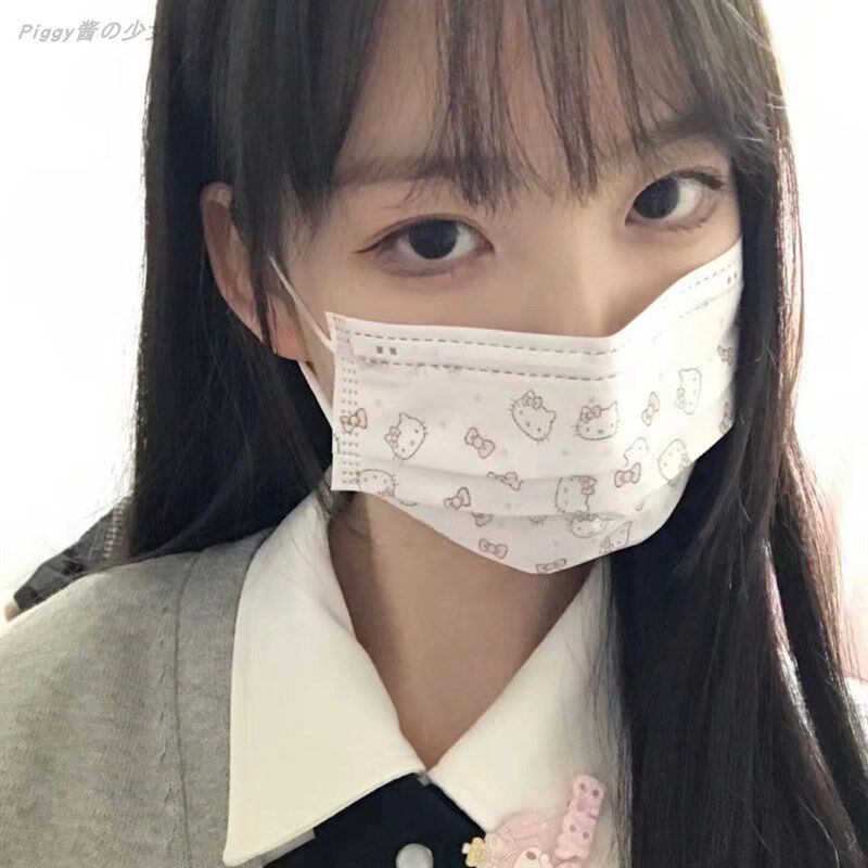 小红书新款小狗猫猫贴贴口罩可爱印花一次性三层防护女高颜值大人