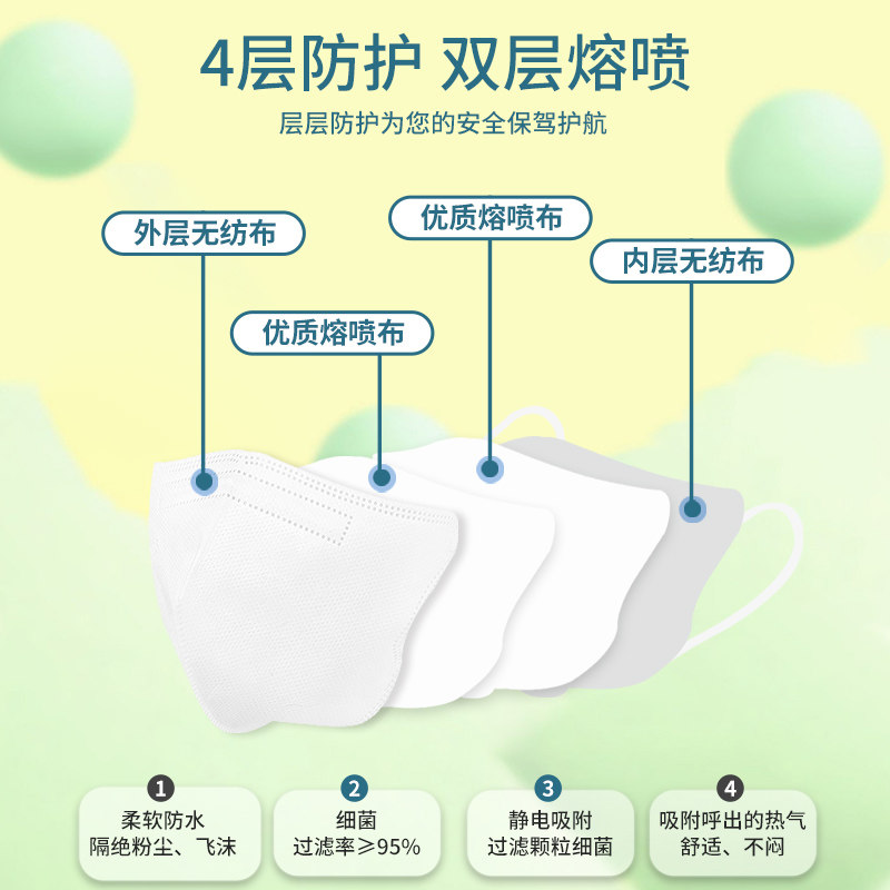 KF94口罩3D立体鱼嘴柳叶四层一次性防护一次性高颜值男女成人口罩