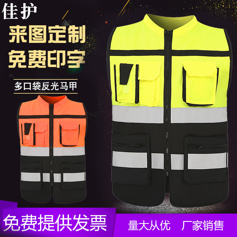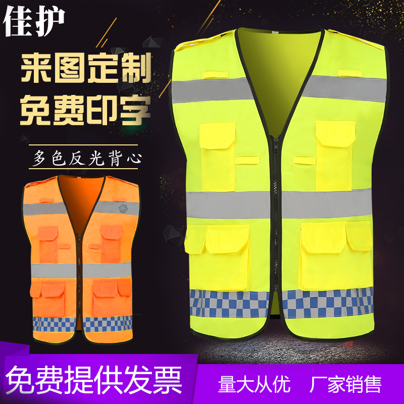 佳护 反光背心马甲可印字多口袋交通施工安全服骑行汽车反光衣