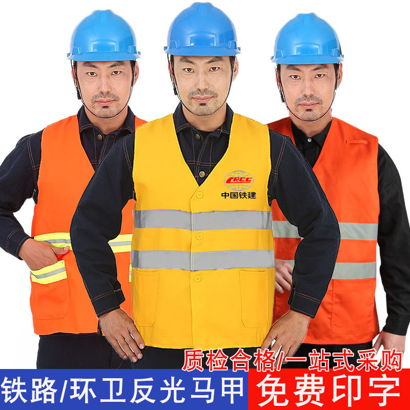 铁路黄反光马甲背心加厚涤棉加大加肥施工防护服工程局反光衣印字