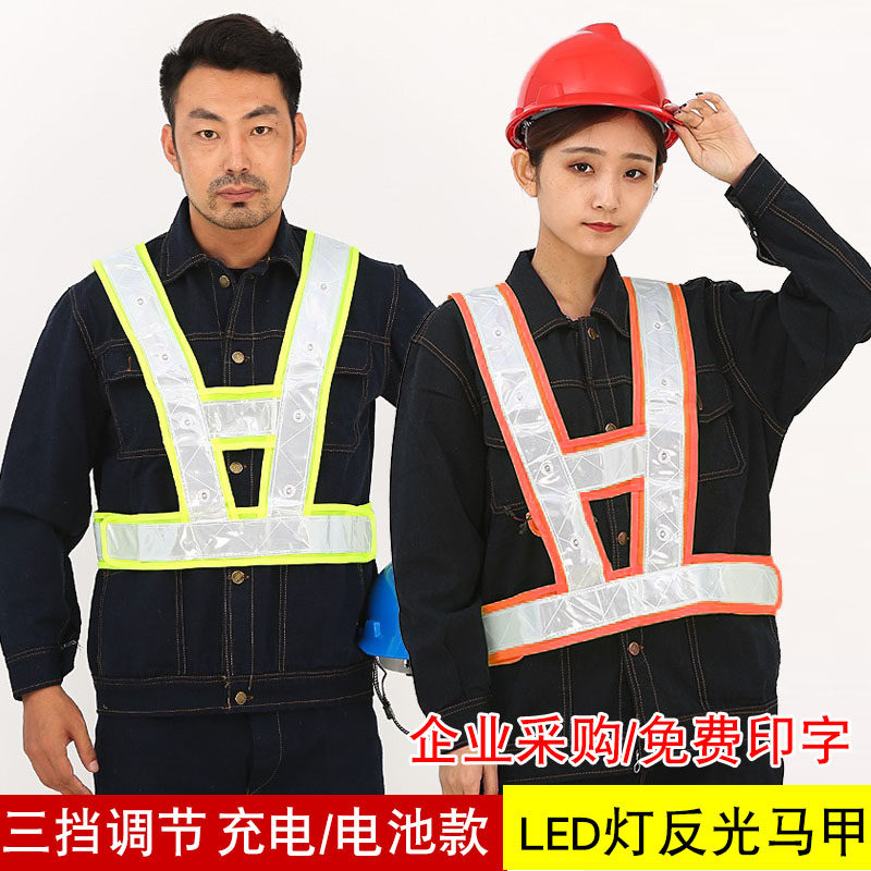 LED带灯反光背心马甲爆闪施工安全服反光夜间骑行高速警示反光服