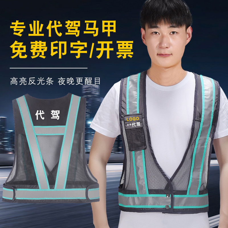 新款滴滴代驾二代反光马甲滴滴代驾透气高亮反光马夹背心定制logo