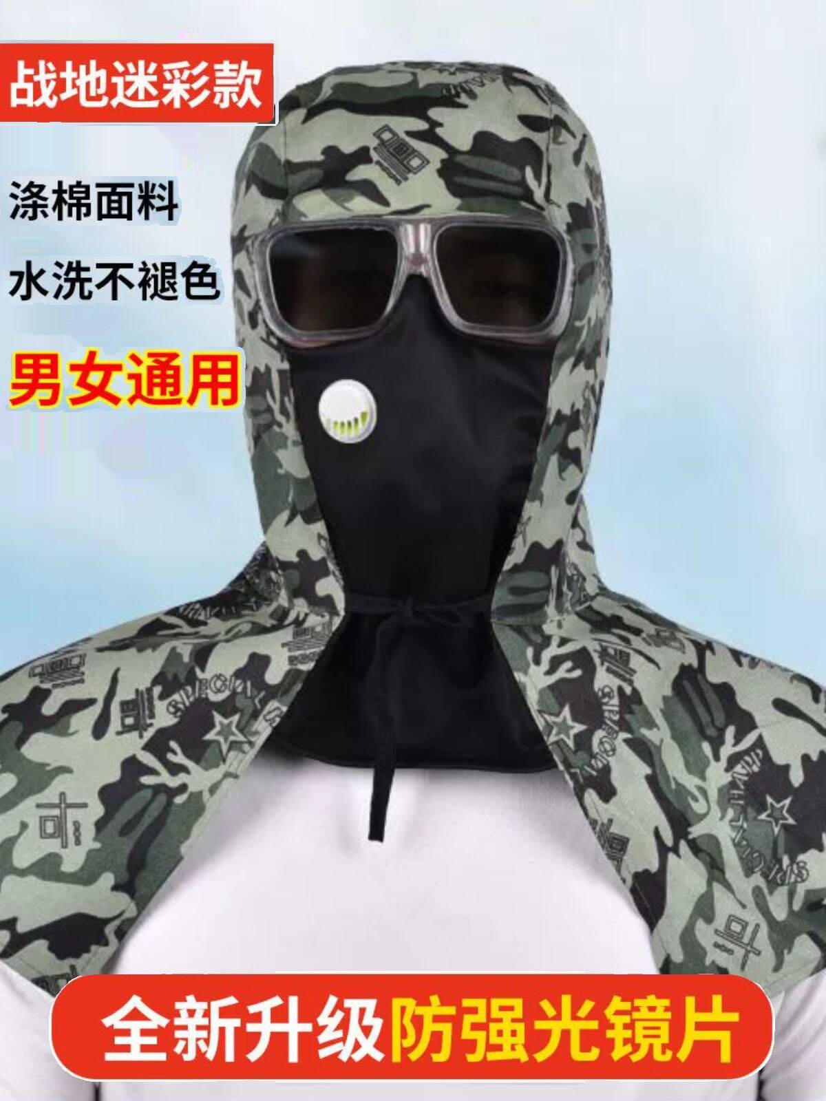 喷漆农打药防护防尘全脸防粉灰尘面罩封闭披肩电工焊接防晒面具帽