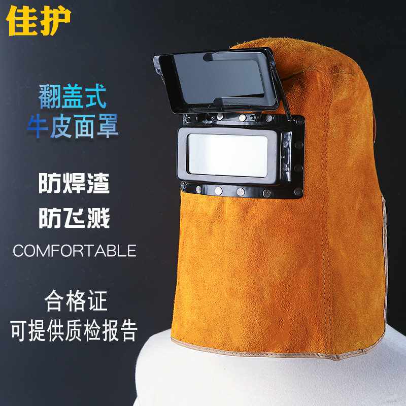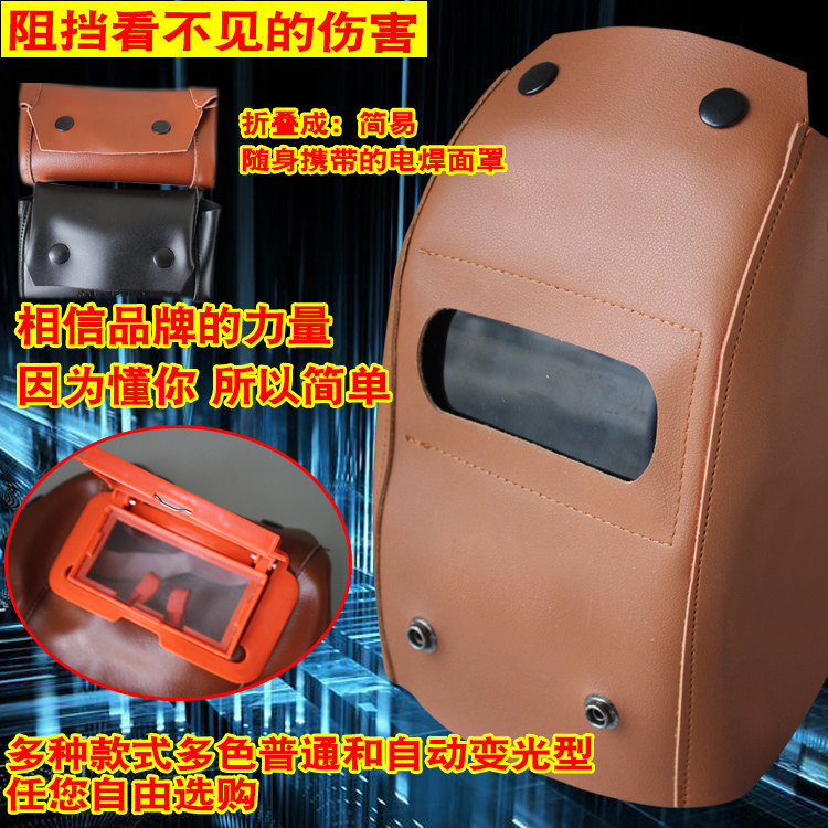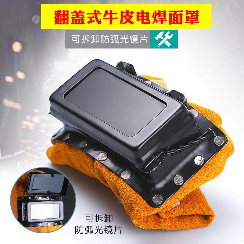 牛皮电焊面罩头戴式焊帽焊工焊接面具翻盖烧焊自动变光电焊面罩