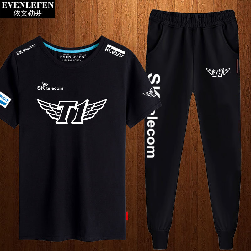 SKT1战队服套装短袖t恤休闲长裤子男T1比赛服纯棉衣服卫裤FAKER款