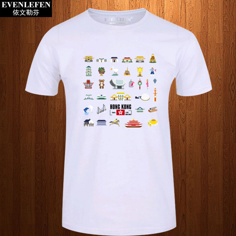 香港旅游标志旅行直喷透气短袖T恤衫男女个性潮流半截袖纯棉衣服
