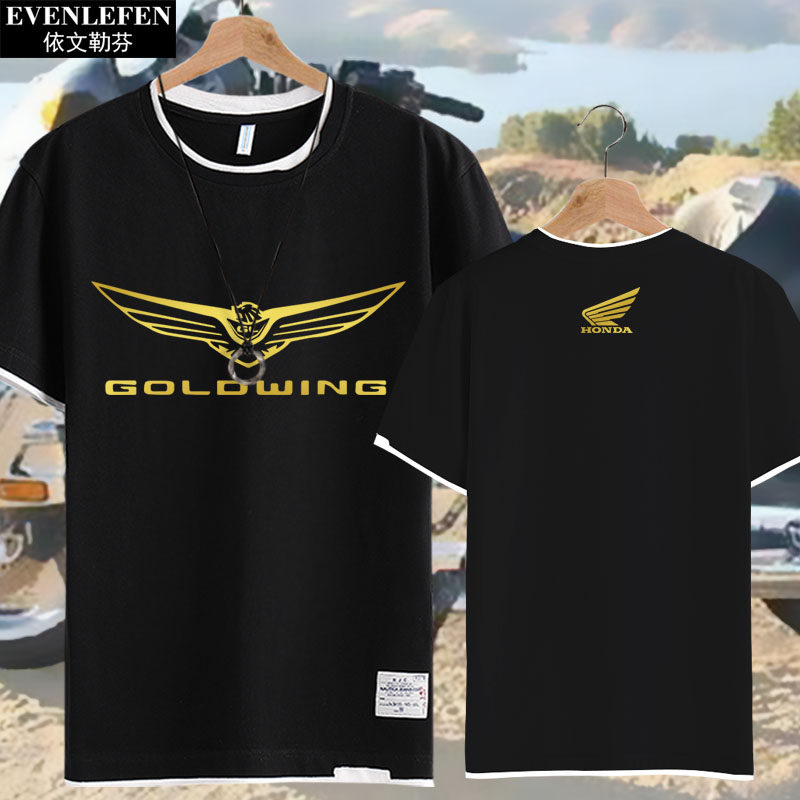 金翼goldwing机车摩托车GL1800假两件短袖T恤衫男士半袖纯棉衣服