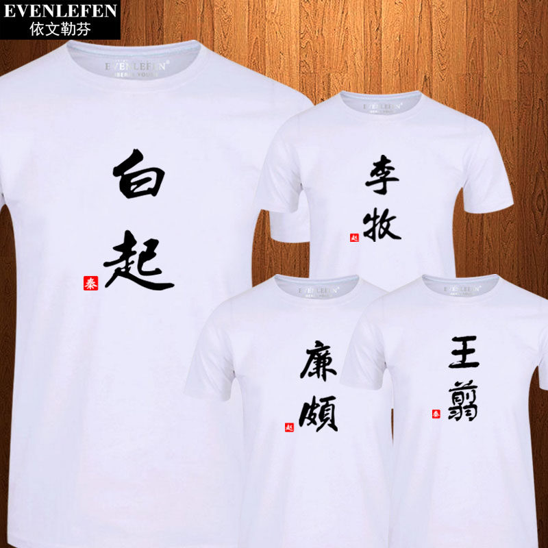 中国风战国四大名将王翦廉颇李牧白起短袖t恤男女纯棉衣服半截袖