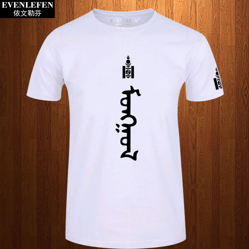 蒙古族Mongolia安达民族风文字T恤短袖男女个性休闲半袖纯棉衣服