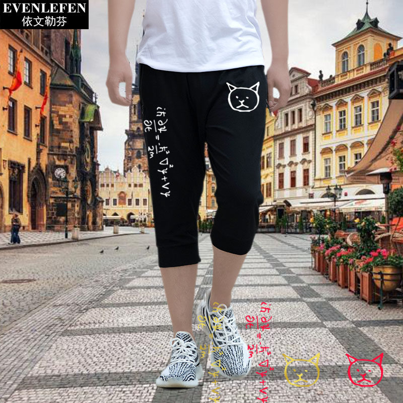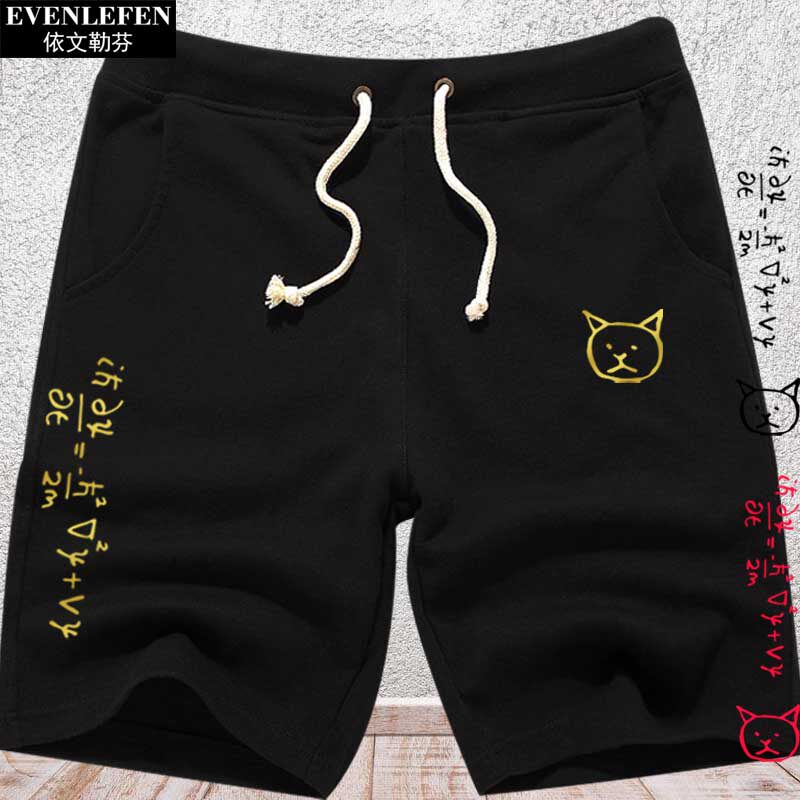 薛定谔的猫物理量子力学公式周边七分裤男女运动休闲短裤7分裤子