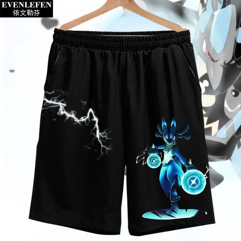 路卡利欧精灵宝可梦联名动漫游戏速干短裤男士学生5五分裤子中裤