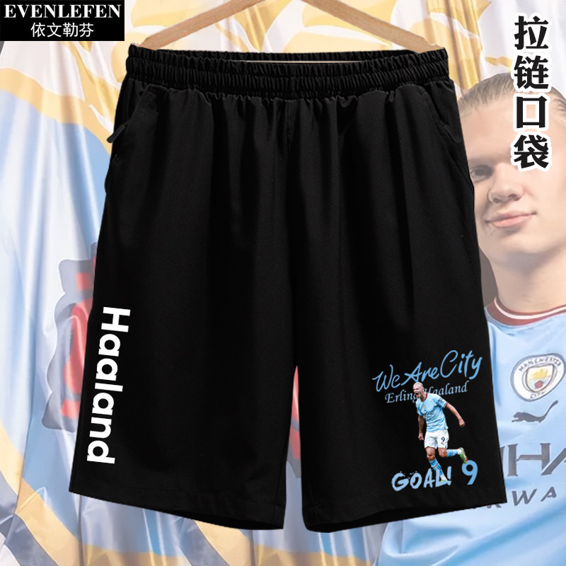 哈兰德欧冠曼城队蓝月亮足球迷速干短裤子男士五分裤休闲运动中裤