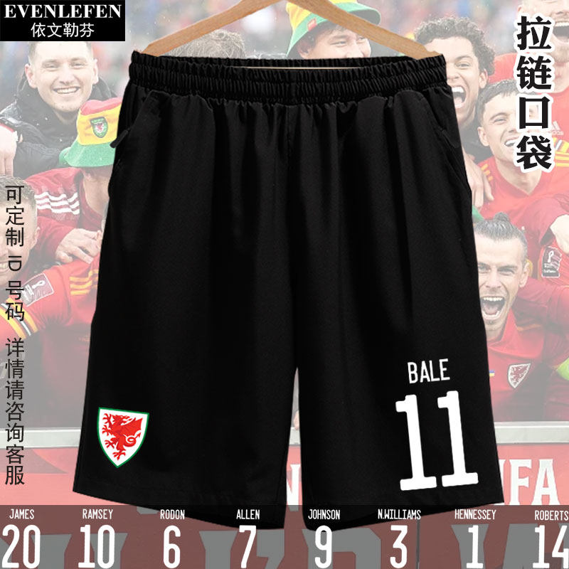威尔士队世界运动杯贝尔拉姆塞足球迷速干短裤男士运动裤五分裤子
