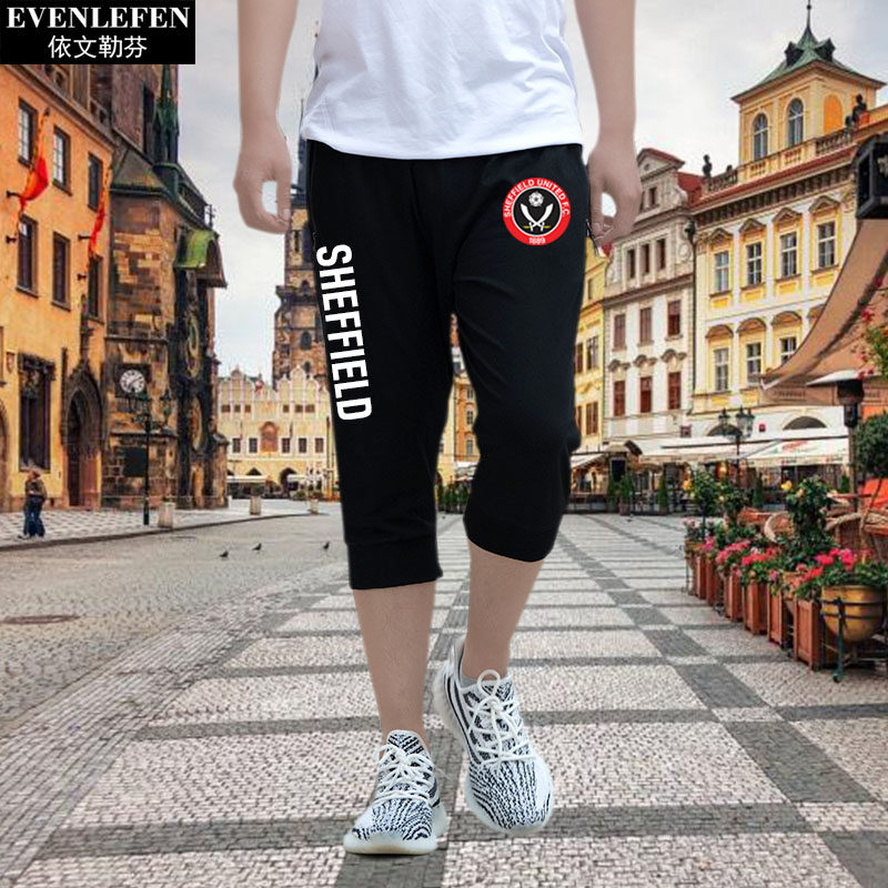 英超谢菲尔德联队足球队服七分裤男女谢菲联球迷短裤运动裤子夏装