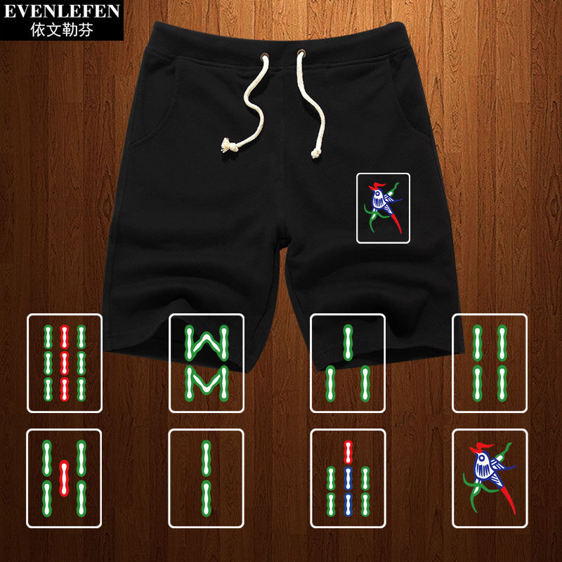麻将短裤男女个性中国风夏季休闲裤幺鸡五条八条沙滩裤子运动卫裤