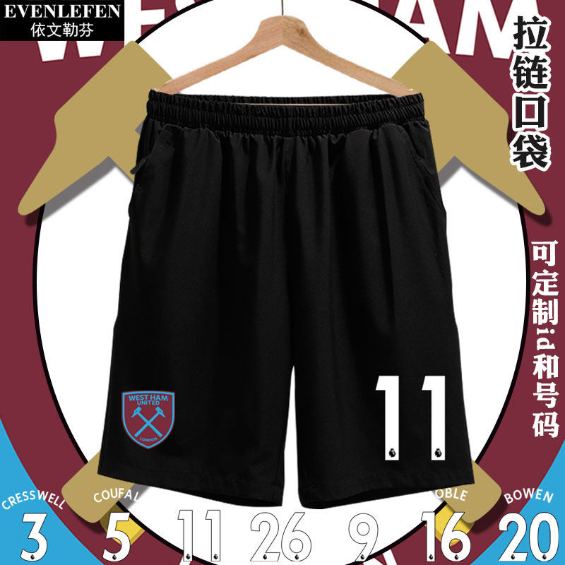 西汉姆联铁锤帮林加德11号足球迷服速干短裤子男士五分裤休闲中裤