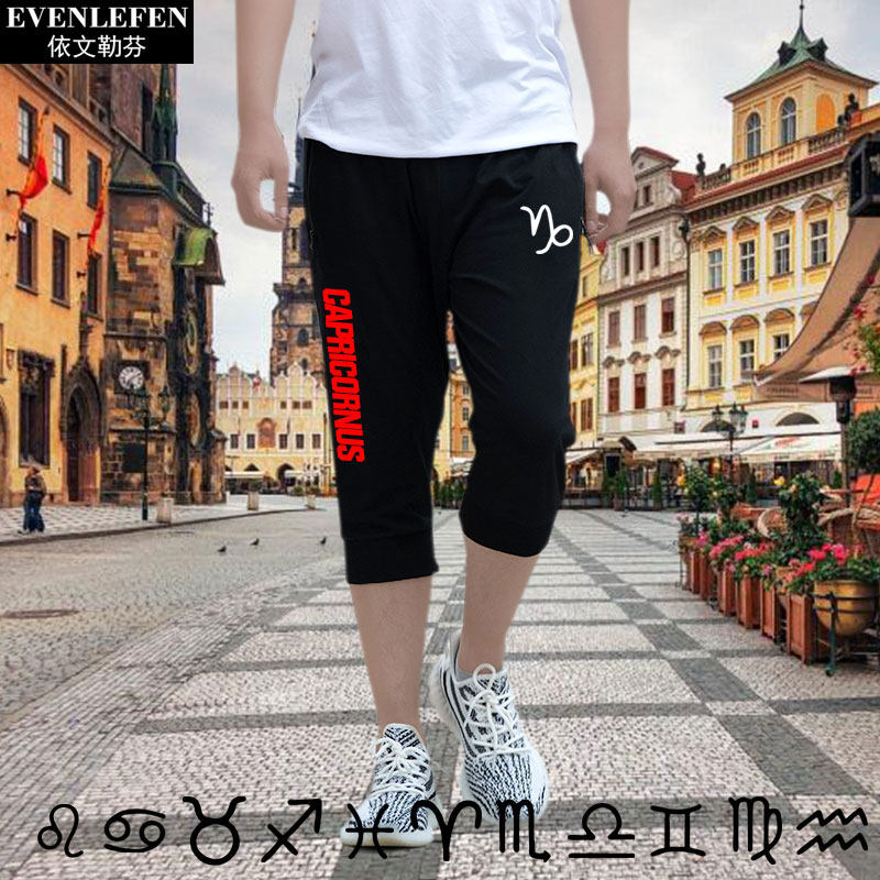 十二12星座中国风潮流小众天蝎射手摩羯水瓶7七分裤子男女短裤夏