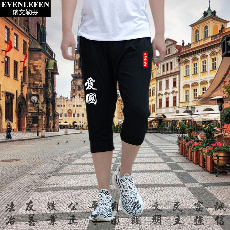 社会主义核心价值观爱国团体服表演服可定制七分裤男女休闲短裤子