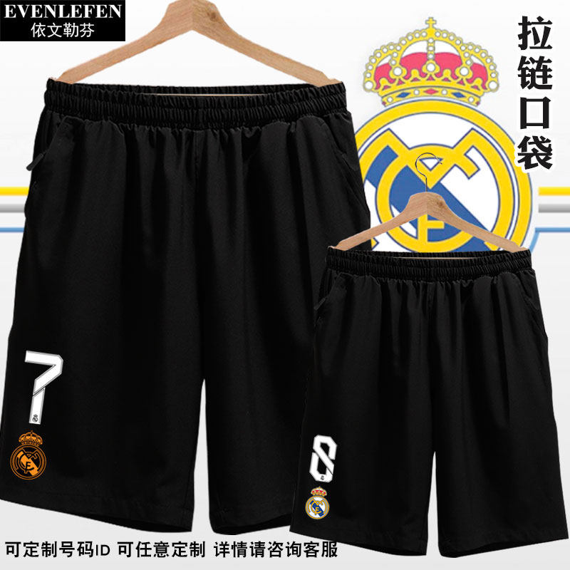 皇马21-22队服阿扎尔足球迷速干短裤子男士5五分裤运动裤休闲中裤