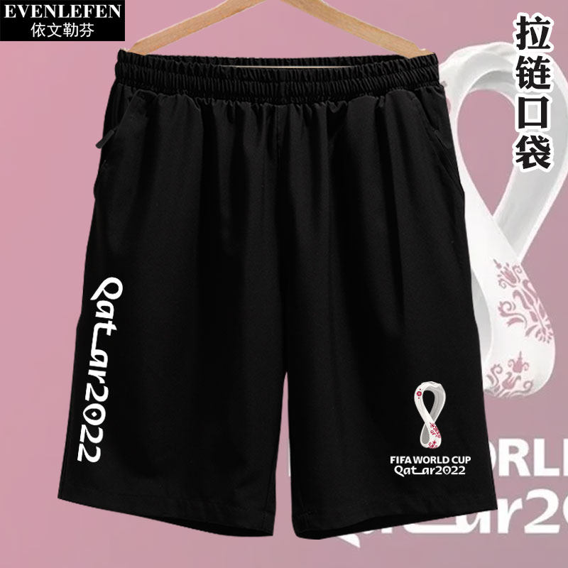 2022卡塔尔世界杯标志徽章足球迷速干短裤子男士五分裤中裤运动裤