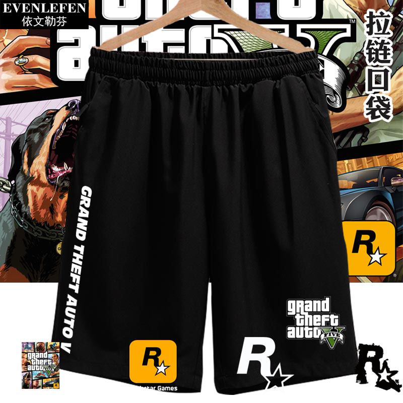 GTA侠盗游戏5玩家周边五分短裤男士学生速干短裤子薄款运动休闲裤